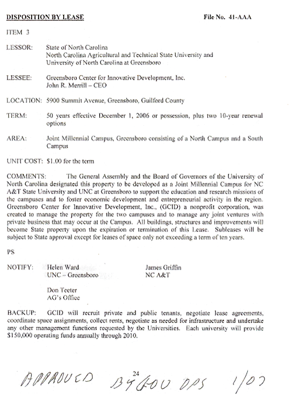 State property Office to UNC BOG to be used