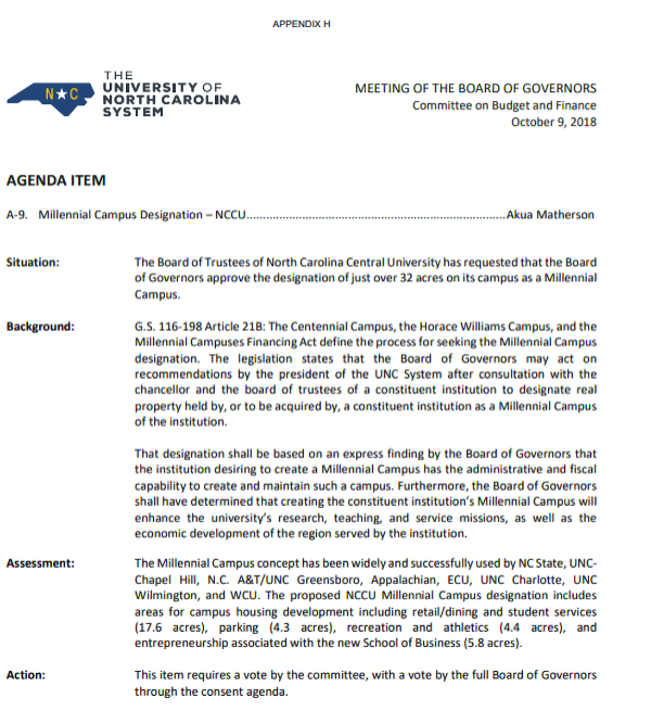 the Millennial Campus Financing Act (G.S. 116-198.31)