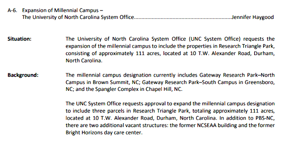 Joint Millennial Campus as alleged UNC System Office Millennial