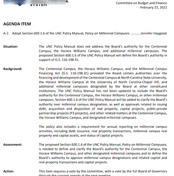 by UNC Board of