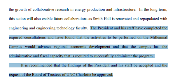 be accepted and the request of the Board of Trustees of UNC